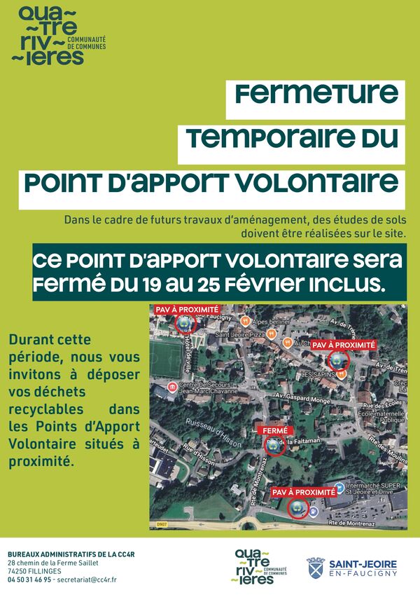 FERMETURE TEMPORAIRE DU POINT D'APPORT VOLONTAIRE RUE DE LA FAITAMAN