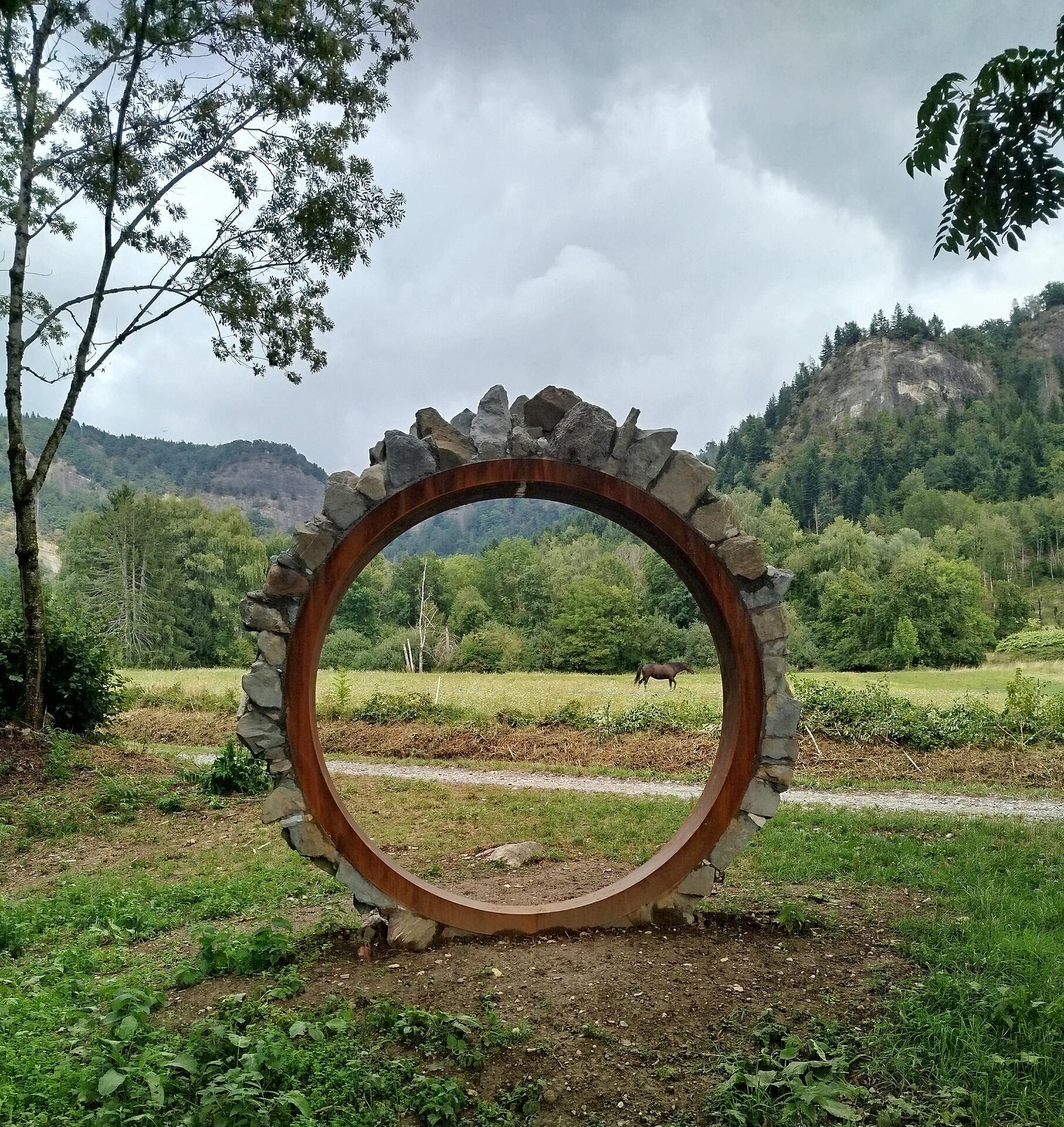 Le projet a été porté par la Communauté de Communes des Quatre Rivières avec le soutien du Département de la Haute-Savoie. C'est l’agence de production artistique Millecent, qui a accompagné l’artiste dans sa mise en œuvre. Ce projet a pris forme grâce à une collaboration précieuse avec Les Ateliers Sud Side pour la conception des cercles en métal, ainsi que de l’entreprise Maçonnerie Degenève et EG.Menuiserie pour le travail de la pierre et du bois local.
