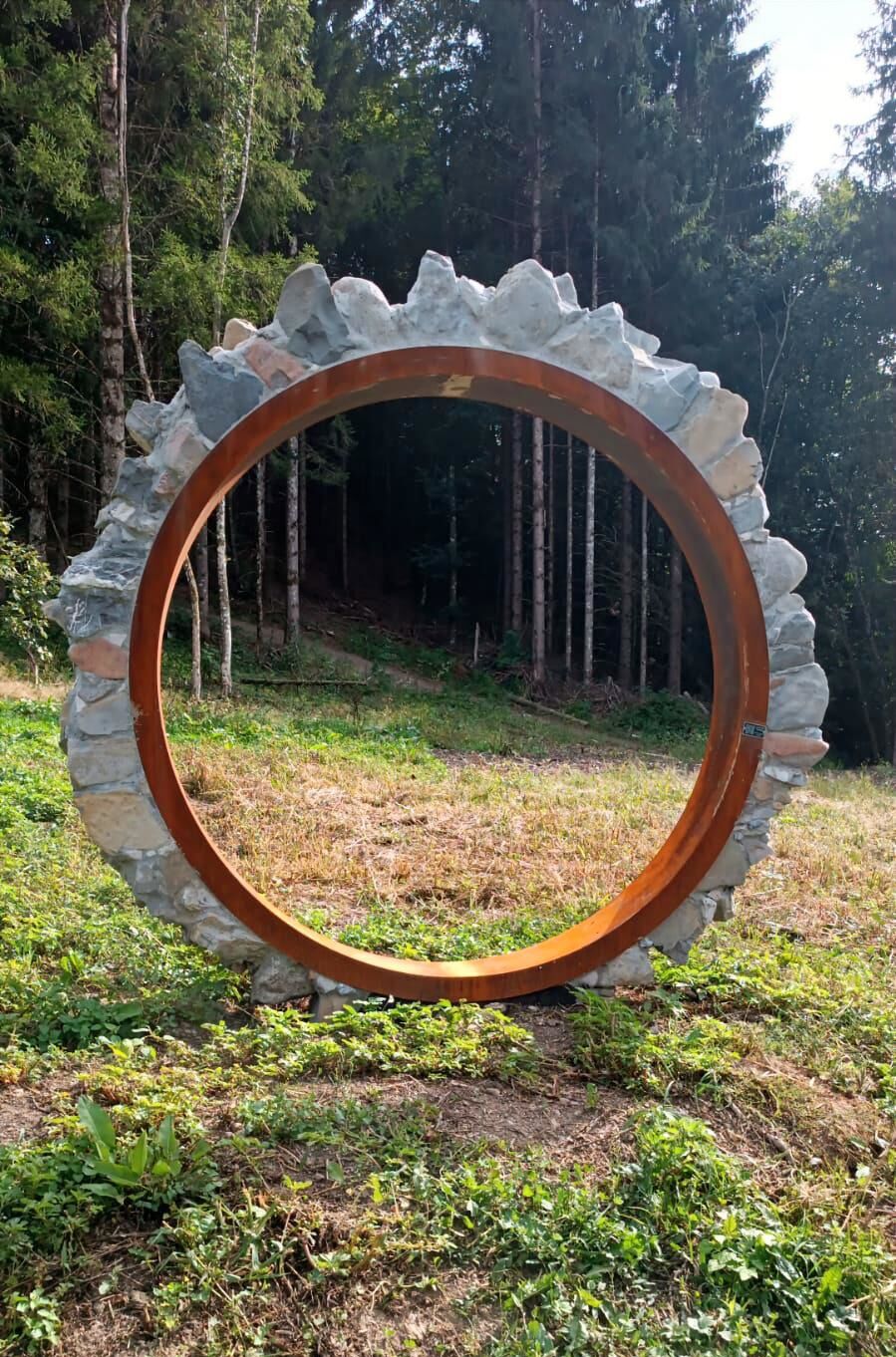 Au travers de trois sculptures monumentales, Laurane Fahrni artiste marseillaise, a souhaité symboliser l'idée de « portes d’entrées » de l’espace naturel du Mont Vouan. Elle fait écho aux meulières taillées par l'homme et aux formes laissées par les extractions successives. Dans sa pratique artistique, elle aime interroger les liens entre nature et empreinte humaine.